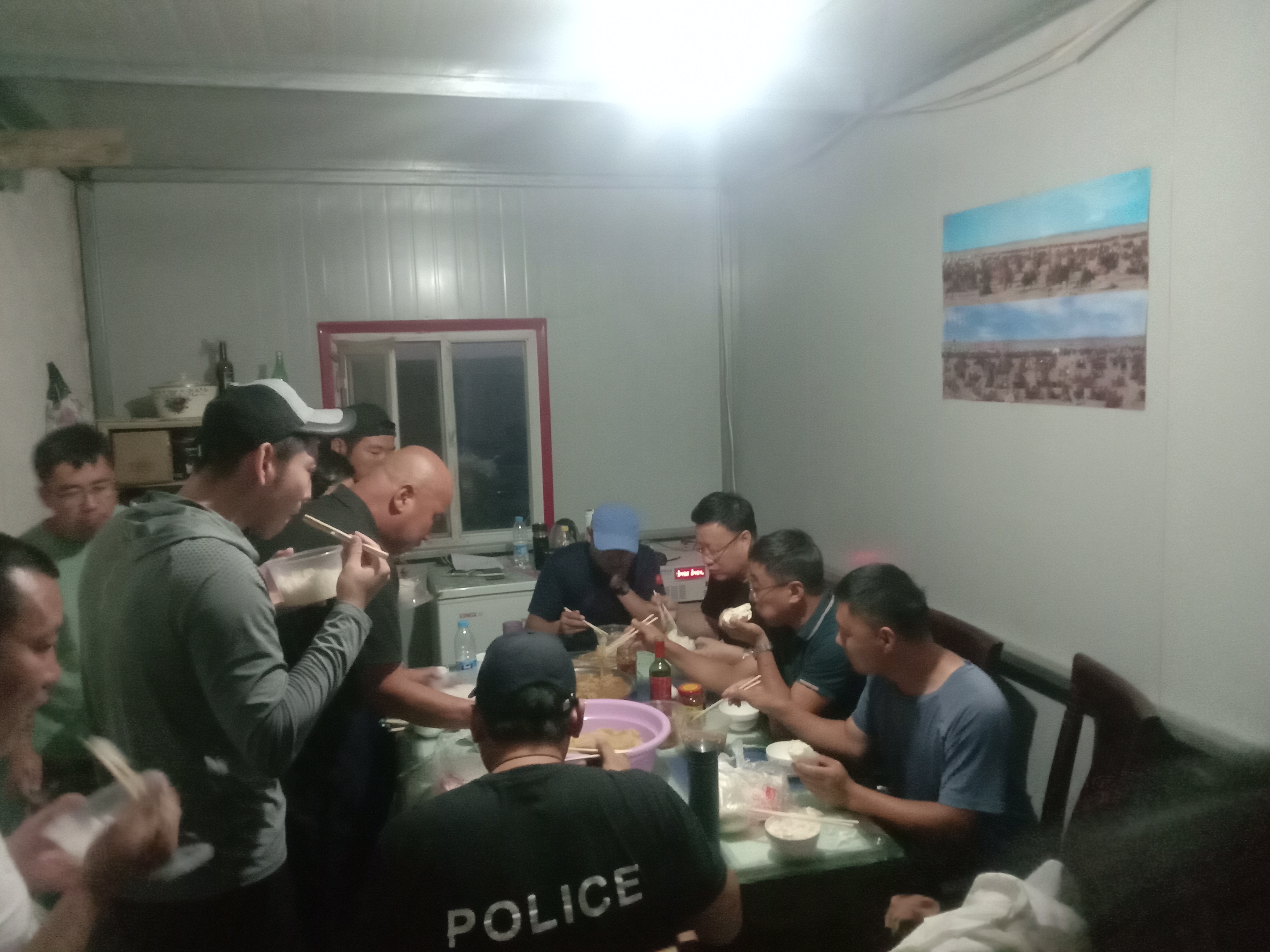邱志剛董事長還與外場作業(yè)組全體員工一起在作業(yè)現(xiàn)場共用晚餐,并詢問大家工作和生活情況。當(dāng)?shù)弥痪€員工在30多度高溫,蚊蟲困擾的環(huán)境下,每天堅持工作長達(dá)12個小時,吃飯是員工自己在野外做,晚上住在牧民臨時搭建的牧鋪中時,邱志剛董事長再一次被大家這種能吃苦,肯奉獻(xiàn)的敬業(yè)精神所感動。要求管理干部要切實做好防暑降溫措施和后勤保障工作,從關(guān)心、愛護(hù)員工的角度出發(fā),盡可能的改善大家的生活和工作條件,雖在異地他鄉(xiāng)也要讓大家感受到大家庭的溫暖。