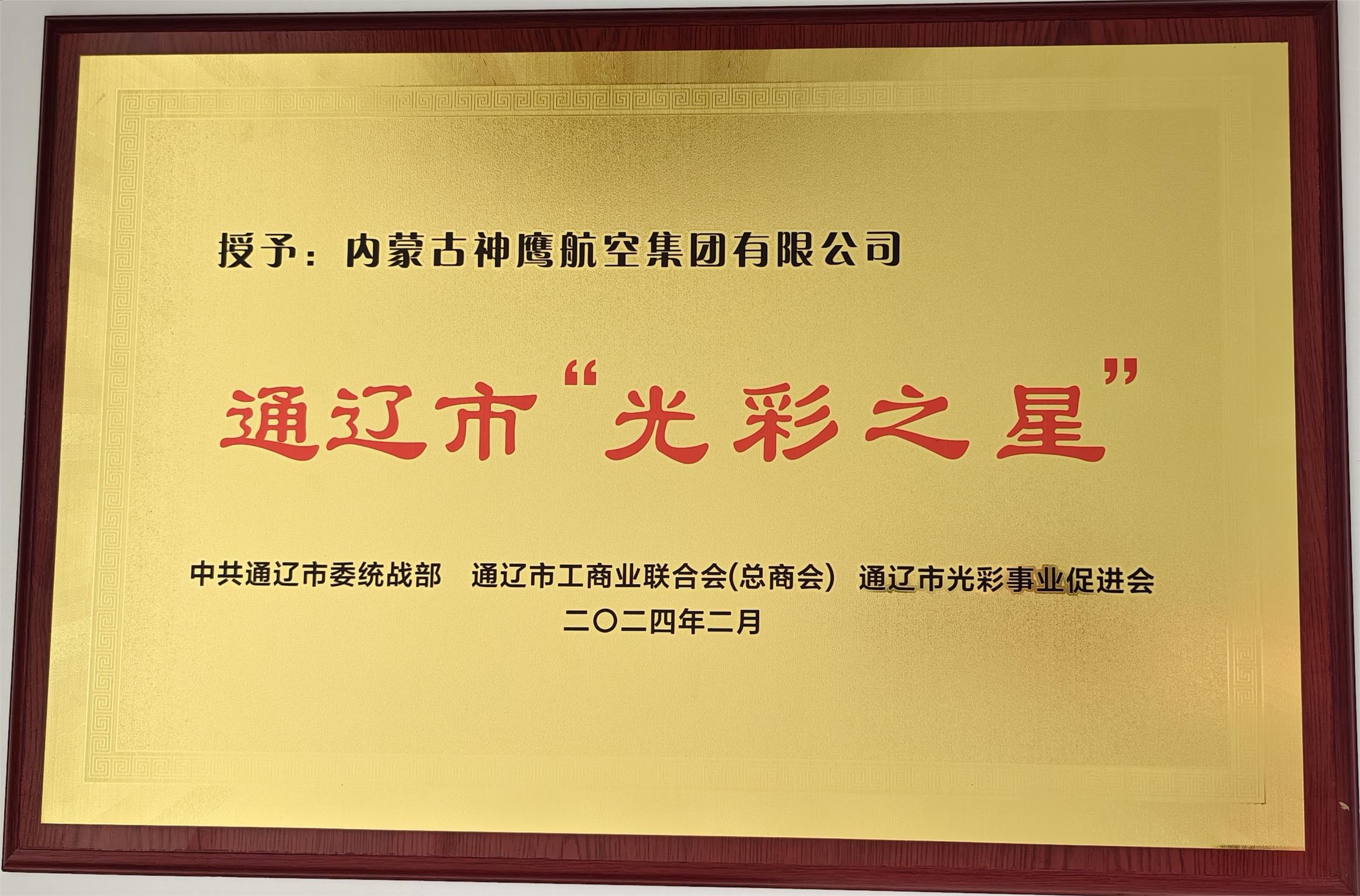 憑借其突出的業(yè)績(jī)和社會(huì)影響力,內(nèi)蒙古神鷹航空集團(tuán)在眾多優(yōu)秀企業(yè)中脫穎而出,榮獲“通遼市光彩之星”這一榮譽(yù)。這一榮譽(yù)不僅是對(duì)公司多年來(lái)的辛勤努力的肯定,也是對(duì)公司未來(lái)發(fā)展的鞭策和鼓勵(lì)。